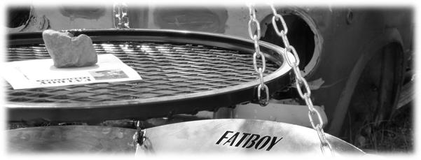 Being in the manufacturing industry, with access to welders, engineers, painting, etc., I set out to see what I could come up with. I looked at various ways of creating a shallow dish, none of which were easy, affordable or aesthetically pleasing. At the time, I was working with laser cutting and plate bending, and so my mind drifted in that direction, the end result being the unique Fatboy wok. To spray-paint it, I found some chain lying around and hung the dish in the tree … I was unable to excavate and transport the tree on which to hang the wok, so I created a simple 3-legged stand with a bent neck to hang the chains on. It has since evolved in quality, shape, materials, etc., but that was how the concept came to be. When I delivered this free-standing, hanging fireplace to Ian at the local pub, he fell off his chair and the idea of producing them was born.