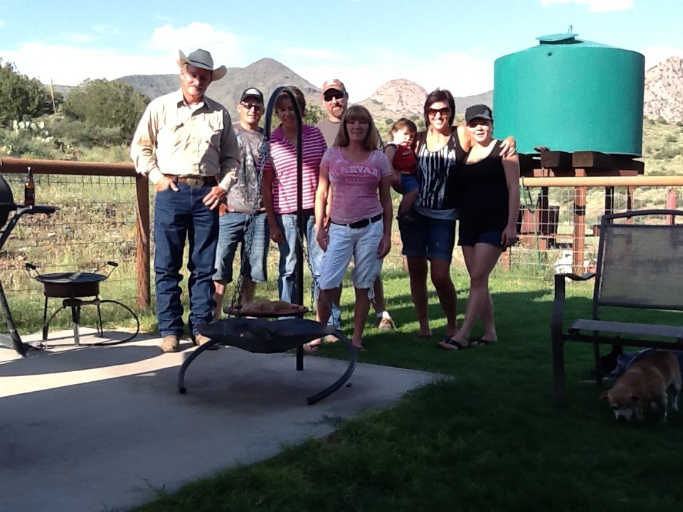 The Goodman family with their new family member... Patio Fatboy Fire, on their cattle ranch in Arizona, USA